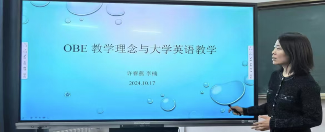 为了将以评促教落到实处,借评估东风营造良好的讨论氛围和学习机会,按照学院工作部署,2024年10月17日下午一点在萃文楼211研讨室大学英语C级班教学团队成功召开本学期的第二次集体研讨活动。此次活动由大学英语BIII课程团队负责人许春燕老师主持,活动主题为以 OBE 为基,借 AI 之力,行科研反哺,促教学提质增效。团队云天英教授、赵志坚老师、赵金宇老师、李楠老师进行了教学分享。