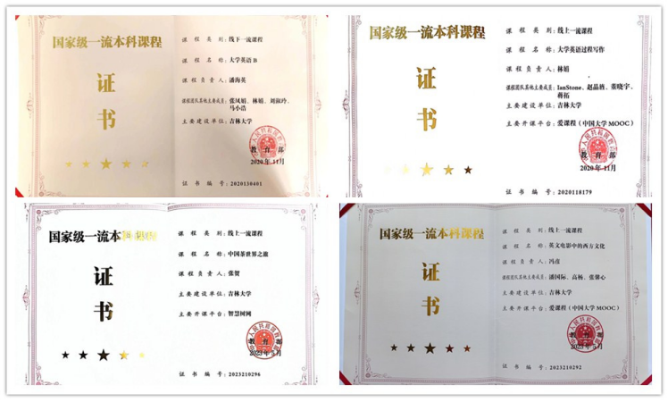 学院在课程建设方面取得新突破,新增国家一流本科课程4门,实现了国家级精品课程从无到有的历史性跨越。近五年学院新增吉林省精品在线开放课程9门(累计10门)。此外,学院教师主编的教材入选吉林省首批本科重点教材立项建设教材1项;获吉林大学教材建设二等奖1项。