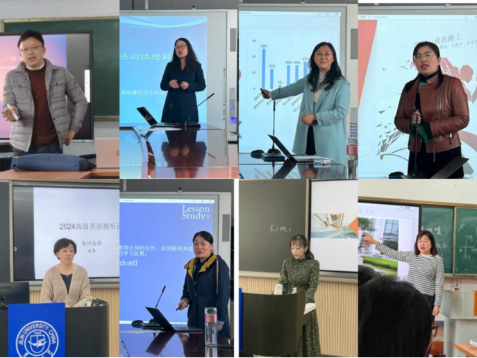 统筹规划,以顶层设计加速教师发展。学院成立外语教师教学发展研究中心,对外语教师发展的相关问题进行系统、持续的研究和探讨;学院科学谋划教师教学共同体建设,注重基层教学组织和教学团队建设,以课程团队和教研室为单位实现集体备课、课堂观摩和教学互评,促进教学水平整体提升。