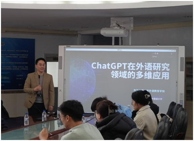 为培养学生科研意识,提高研究生科研素养,促进学生紧跟时代前沿发展,加强新技术的应用学习,拓宽论文写作思路,12月9日上午,公共外语教育学院于外语楼6楼大厅开展了题为“ChatGPT在外域研究领域的多维应用”的讲座。