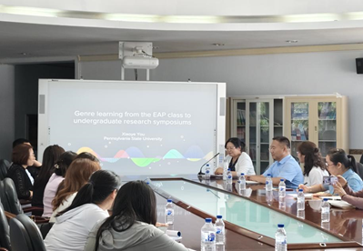 为庆祝吉林大学研究生院建院四十周年,2024年6月25日下午,公共外语教育学院特邀美国宾夕法尼亚州立大学英语系和亚洲研究系人文教授、博士生导师游晓晔教授,在中心校区外语楼六楼会议厅做了题为“从学术英语课堂到创新创业比赛过程的体裁学习”的学术报告。游晓晔教授曾于2014—2020年任广东外语外贸大学云山讲座教授,出版专著7部,发表论文、书评等60余篇,其中22篇发表在SSCI、AHCI期刊。研究领域为比较修辞学、多语言写作、世界英语。报告会由战菊教授主持,学院部分教师及研究生参加了报告。