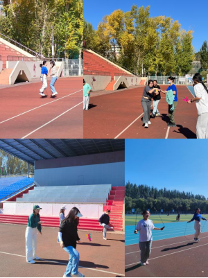 为激发同学们的运动热情,帮助同学们增强体魄、提高免疫力,以更好的身体状态迎接寒冷的冬天,公共外语教育学院于928午在中心校区田径场举办了跳绳毽子接力挑战赛,本次活动由学院文体部工作人员孙琪、张金月组织,学院研究生辅导员林明帅2023级和2024硕士研究生参加。