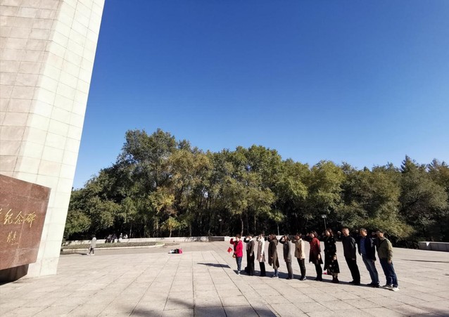 为庆祝中华人民共和国成立70周年,2019年10月8日,公共外语教育学院十教党支部开展迎国庆主题党日活动。在学校和学院党委的号召下,组织全体党员集中观看爱国主义题材电影《我和我的祖国》,并在长春解放纪念碑前重温入党誓词。