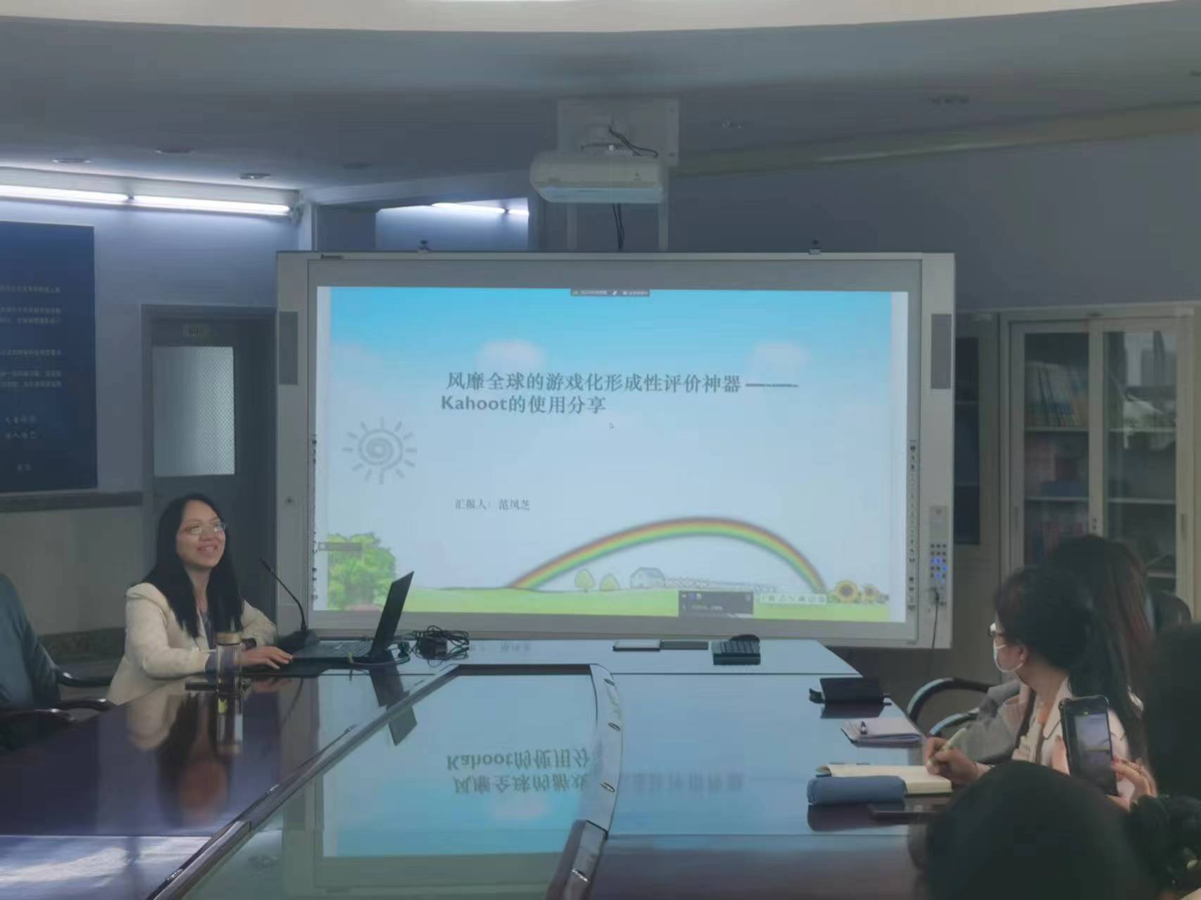范凤芝老师充分利用数字化信息技术,为大家带来了游戏化形成性评价的神器 —— Kahoot的使用分享。她分别介绍了中外相关研究和实际课堂使用实况,并通过调查问卷及时了解学生需求,反思教学进而做出调整。范老师现场邀请大家扫码参与,令在场教师身临其境地感受到新教学工具强大的互动功能,其高效、及时、透明的 反馈机制极大地激发了学生的学习兴趣,提高了学生课堂参与度。