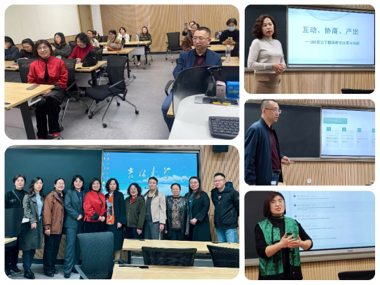 为提高翻译教学效果,打造高效、互动的翻译课堂,2024年10月17日下午,我院英汉翻译基础教学团队在逸夫教学楼102成功组织了教学研讨活动。本次会议由于丁丽蓉教授主持,赵金宇老师担任主讲人,全体翻译课程教学团队教师积极参与。本次活动旨在讨论如何基于OBE理念,设计以学生为中心,以成果为导向的翻译课程教学模式,持续提高翻译教学效果。