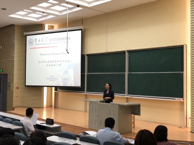 2018年8月29日下午,公共外语教育学院在前卫校区逸夫楼第五阶梯教室举办2018级全体研究生新生入学教育暨导师见面会。