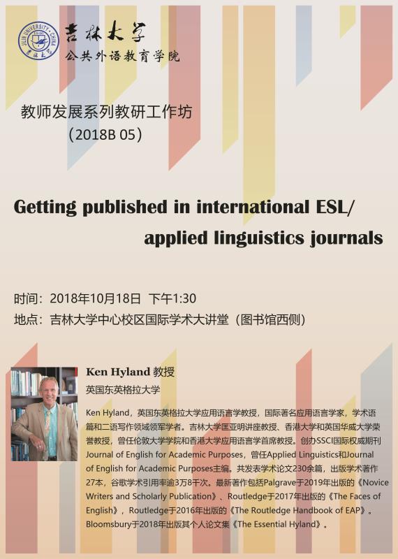 讲座题目:Getting published in international ESL/applied linguistics journals