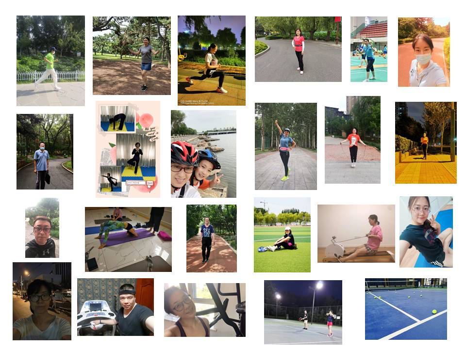 因故不能参加净月潭徒步的教师开展了线上活动,线上活动不限具体地点,自行选择公园、操场等健身场所,可以是跑步、步行、瑜伽,球类等体育运动。