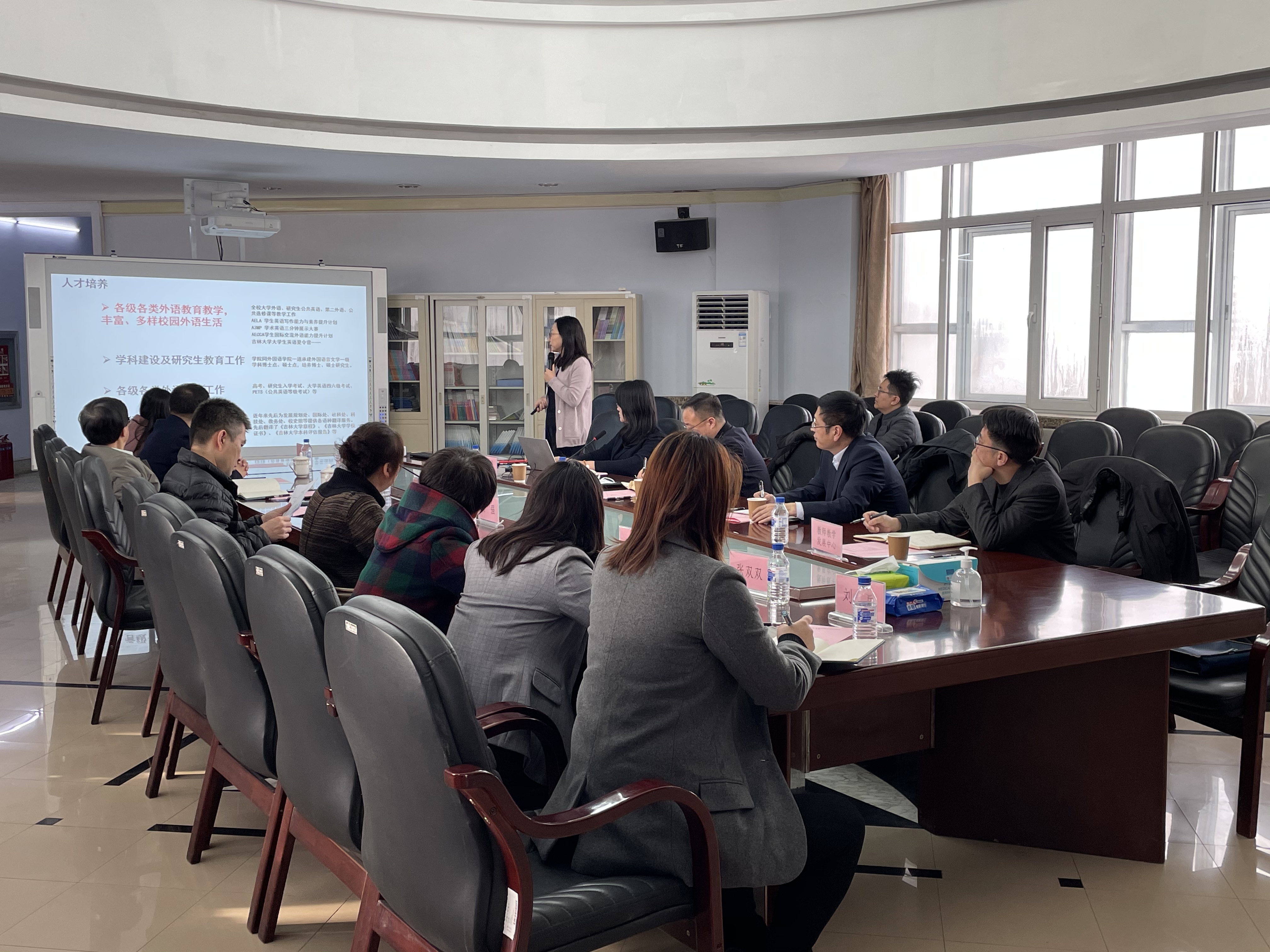 公共外语教育学院院长潘海英、党委书记贺强、副院长王守宏、党委副书记徐杰、行政副院长沈斌,及相关科室负责人、教师代表参加了调研活动。