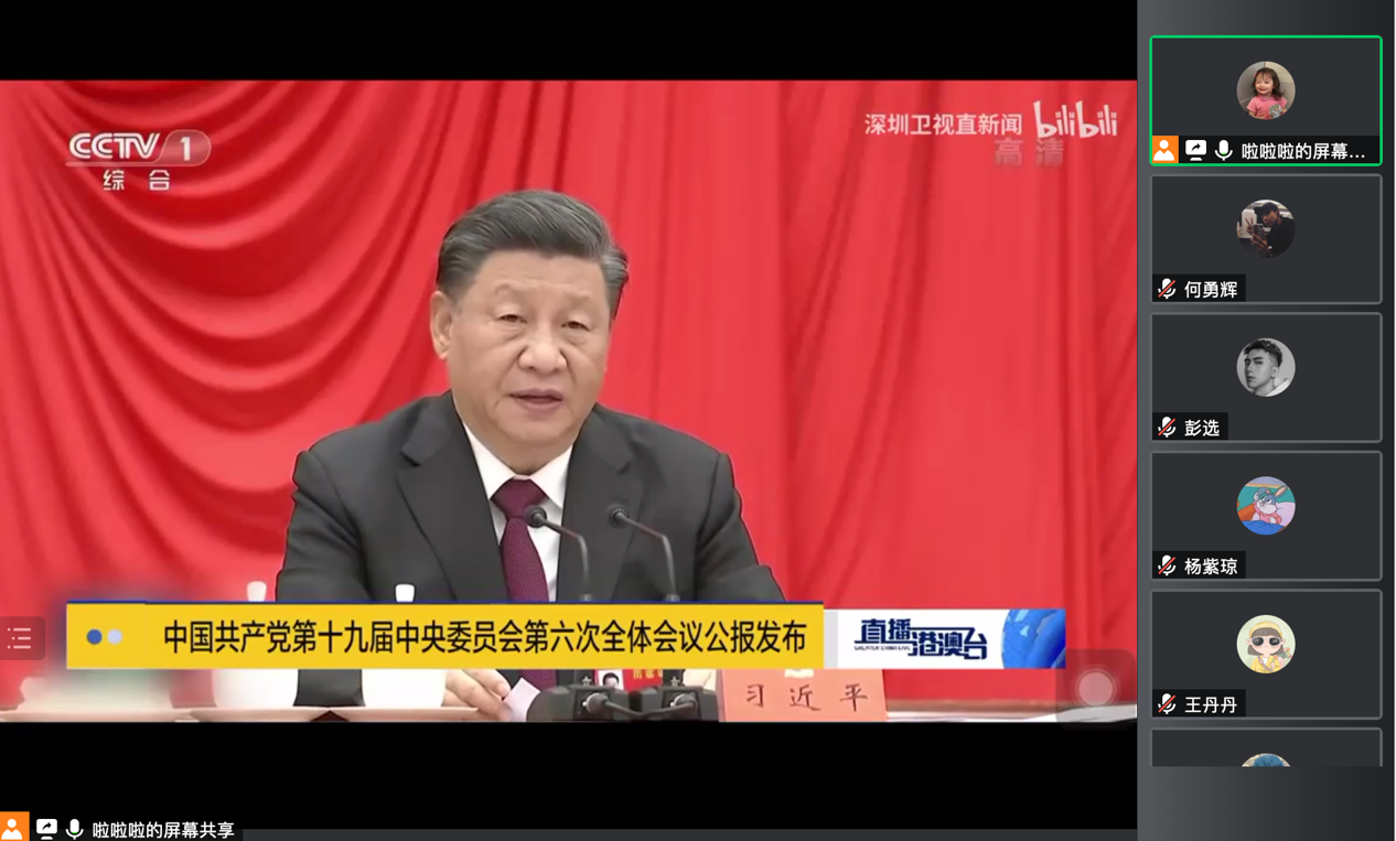 为深入学习贯彻党的十九届六中全会精神,深刻理解党百年奋斗的历史经验,深化学生干部爱党情怀,公共外语教育学院研究生会组织开展了“学习十九届六中全会精神”活动。2021年11月25日下午,公共外语教育学院研究生会全体成员以线上会议的形式,学习了十九届六中全会精神。本次会议由院研究生会主席曲哲主持,研究生会全体学生干部参与学习。