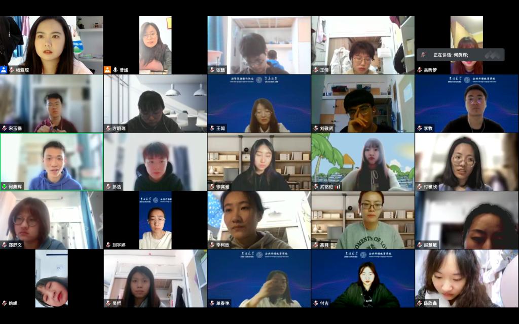 为进一步了解同学们在封寝期间的学习生活状态公共外语教育学院于3月20日下午召开了全体研究生线上会议本次会议由研究生辅导员曾媛主持学院学院全体200余名研究生参会