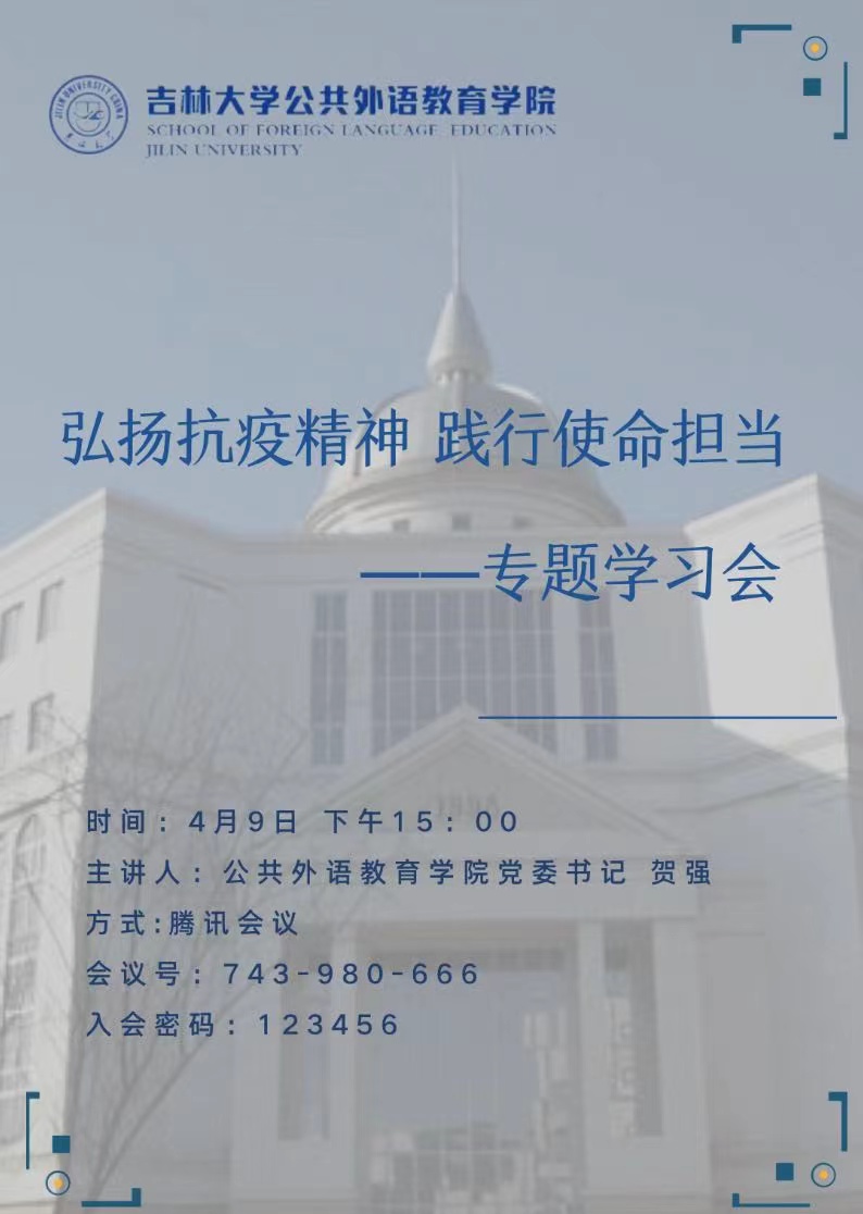 公共外语教育学院召开“弘扬抗疫精神 践行使命担当”主题学习会