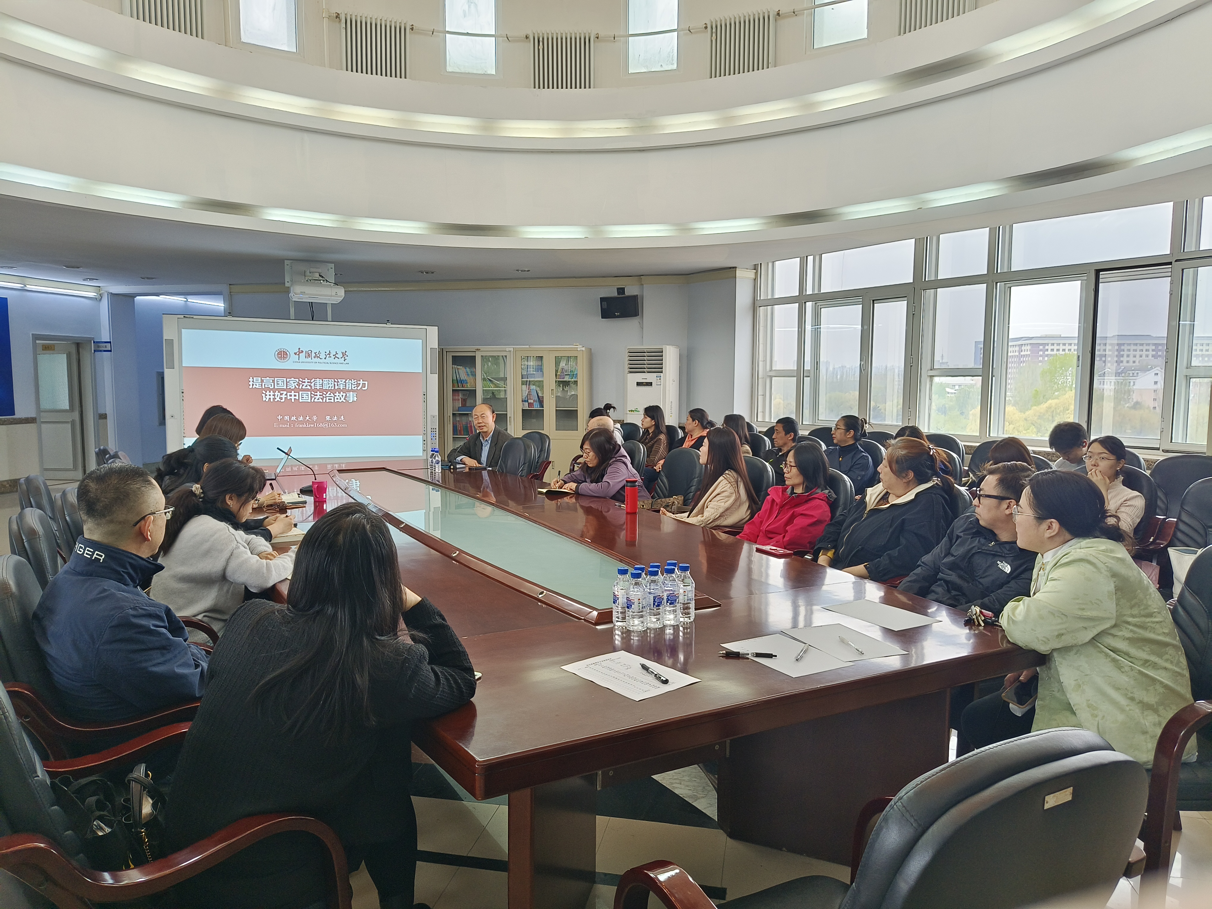 潘海英院长首先代表学院对张法连教授的到来表示欢迎和感谢,并指出当前大学外语教育应顺应国家要求积极转型,法律英语的研究将为我们培养新时代人才提供宝贵的思路和经验借鉴。