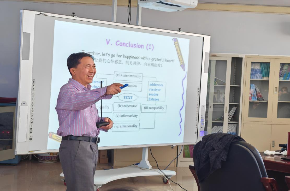 2024年10月11日下午,米兰官方版网站登录入口“贺《篇章语言学》在吉大开课二十一周年”专题纪念讲座在外语楼六楼报告厅成功举办。本次讲座由张锦副院长主持,吴宪忠教授主讲。吴宪忠教授现为米兰官方版网站登录入口研究生英语第二教研室教师,主讲《篇章语言学》、《学术交流英语》等课程,研究方向为“篇章语言学”和“英语教学”,曾获“吉林省省直先进工作者”、“吉林大学本科课堂教学质量优秀奖”等荣誉称号和奖项。