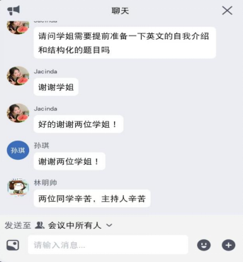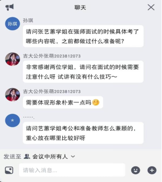 在答疑互动环节,张艺蕙和卢知慧就同学们提出的疑问进行了耐心细致的解答,并激励同学们明确就业方向,灵活应对求职过程中的挑战。