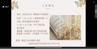 张艺蕙结合自身经验,详细回顾了自身的校招经历,并分享了自己最终选择当前工作的原因以及成功上岸“强师计划”的经验。张艺蕙主要从工作环境、薪资待遇以及教育压力三个方面分享自己目前的工作状况,帮助同学们了解就业形势,确立就业目标。她还鼓励大家提前了解就业信息,明确自己的方向,早日为就业做好准备。